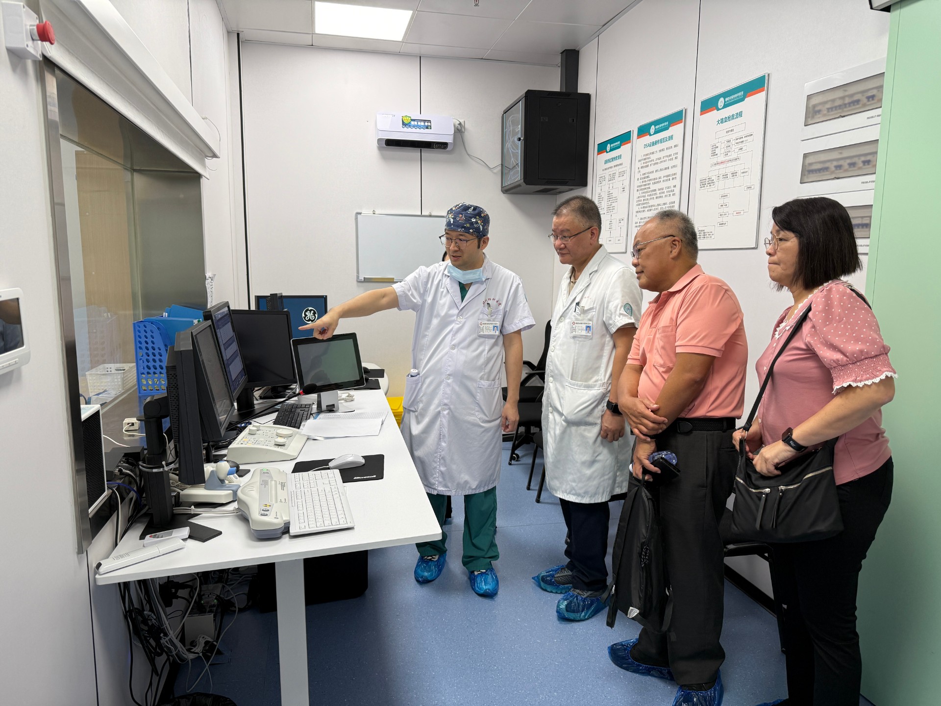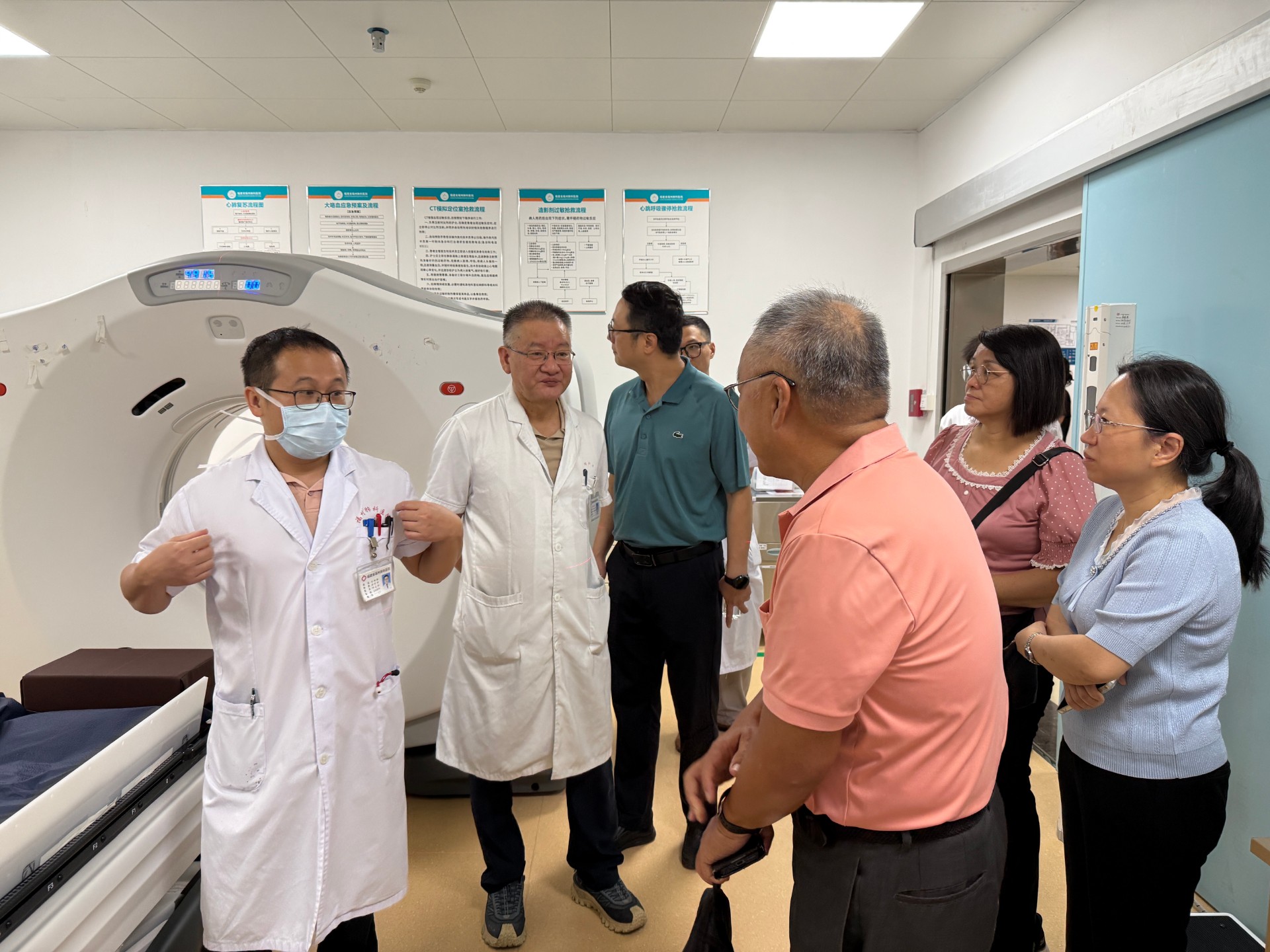 9月30 日上午,吴应贵教授先后参观了医院南广场、介入科、影像中心、放疗科等区域。过程中,吴教授详细了解了医院的诊疗流程、设备配置及科室建设情况,对医院先进的医疗设备和规范化的管理体系给予高度评价,认为医院具备开展 AI 临床转化研究的优良基础。