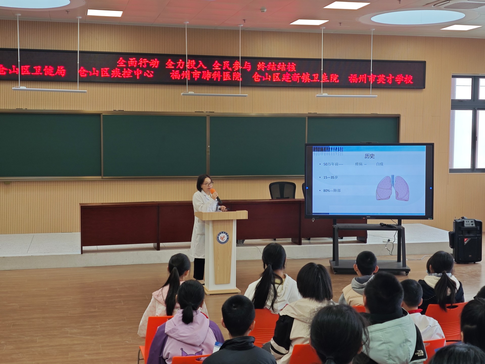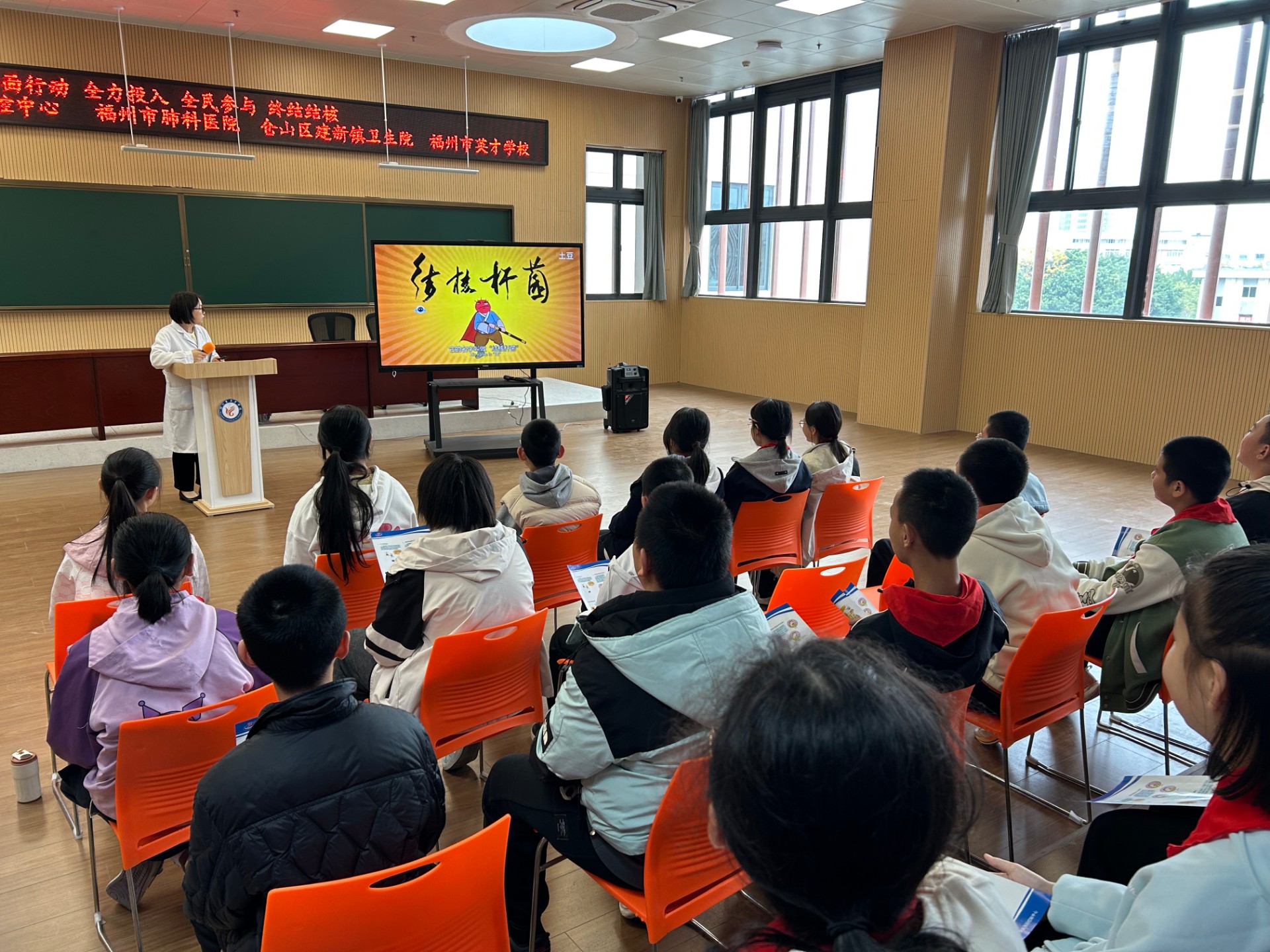 3月24日上午,在世界防治结核病日当天,宣传团队走进福州市第十六中学流花溪分校,为初中学生带来了一场兼具科学性与趣味性的专题讲座。